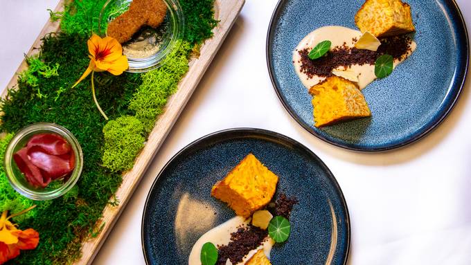 Ob sommerlicher Apéro auf der Terrasse oder Glühwein-Apéro am Feuerturm – im gartenHAUS ist (fast) alles möglich. Am Abend erwartet die Gäste ein wechselndes Mehrgang-Menü, zubereitet aus sorgfältig ausgewählten Zutaten direkt vom Bauern. Wer möchte, kann sich vorab auf der Webseite über das aktuelle Menü informieren oder sich bewusst überraschen lassen. Das Menü ist jeweils mit oder ohne Fleisch erhältlich. Gepickelter violetter Blumenkohl, grillierte Essiggurken oder frittierter Salbei laden zum Staunen, Probieren und Geniessen ein – das gemeinsame Erlebnis steht dabei stets im Mittelpunkt.