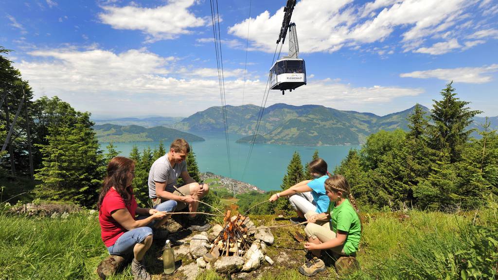 Die Goldi-Familien-Safari beginnt in Beckenried mit der Luftseilbahnfahrt auf die Klewenalp. Nach einem Besuch im Murmelipark und Kräutergarten führt ein kinderwagen-tauglicher Weg in rund 90 Minuten zur Stockhütte mit Kinderspiel Platz und Restaurant. Die Gondelbahn bringt die Wanderer nach Emmetten und weiter mit dem Postauto nach Seelisberg. Die Wallfahrtskapelle und Bergkäserei laden zum Besuch ein und dann geht’s mit der Standseilbahn nach Treib und weiter mit dem Schiff zum Ausgangspunkt Beckenried. Kinder mit der SBB-Juniorenkarte reisen gratis mit. Mehr Infos unter www.regionklewenalp.ch.