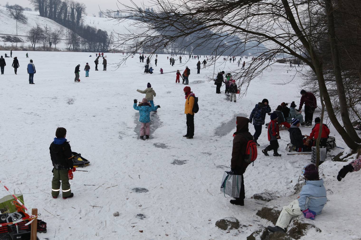 Wir waren auch auf dem Rotsee und trafen viele staunende Augen. Familien waren mit Schlitten unterwegs, einige machten kleine Eishockey-Turniere und ein paar gingen einfach auf dem See, anstatt um den See spazieren.
