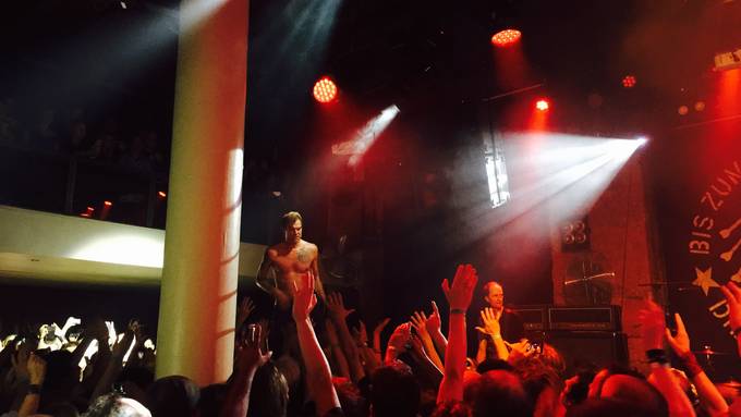 Vom Letzigrund ins Mascotte - und vom 50'000er Publikum zum 500er Publikum: Die Toten Hosen gaben am Montagabend ein einmaliges, exklusives Konzert im Mascotte in Zürich. Sänger Campino meinte zu Beginn ironisch: «Herzlich willkommen Zürich. Heute machen wir es uns gemütlich hier! Wir freuen uns, dass ihr uns auch nach unserer erfolgreichen Zeit in einem solchen Club hier weiterhin unterstützt und den alten Männern zuhört.» Gerade mal eine Handvoll Fans hatten die Chance die Band und Campino so nahe wie nie zu erleben.