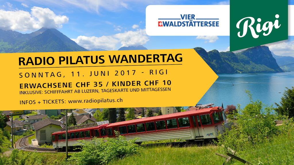 Der Radio Pilatus Wandertag auf der Rigi: 500 Hörerinnen und Hörer profitieren von einem Ausflug auf die Rigi. Für 35 Franken (statt 100 Franken) erhältst du eine Tageskarte für das Wandergebiet Rigi inkl. Schifffahrt von Luzern nach Vitznau und retour. Zudem ist auch das Mittagessen im Preis inbegriffen. Kinder unter 16 Jahren bezahlen 10 Franken.