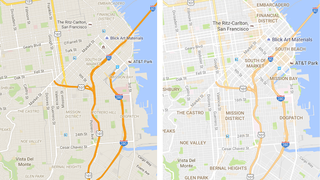 Google hat seine beliebte Karten-App Google Maps einem Facelifting unterzogen. Weniger wichtige Infos und Platzhalter wurden entfernt, dazu kamen nützliche Informationen. Zum Beispiel, wo in einer Stadt das Leben tobt. Zonen mit vielen Restaurants, Shops und Bars sind neu orange eingefärbt. So findet man sich als Tourist schnell zurecht in einer fremden Stadt. Auch die Typographie wurde überarbeitet, Strassennamen sind nun deutlich besser lesbar und Orte wie Restaurants, Bushaltestellen etc. einfacher zu finden.