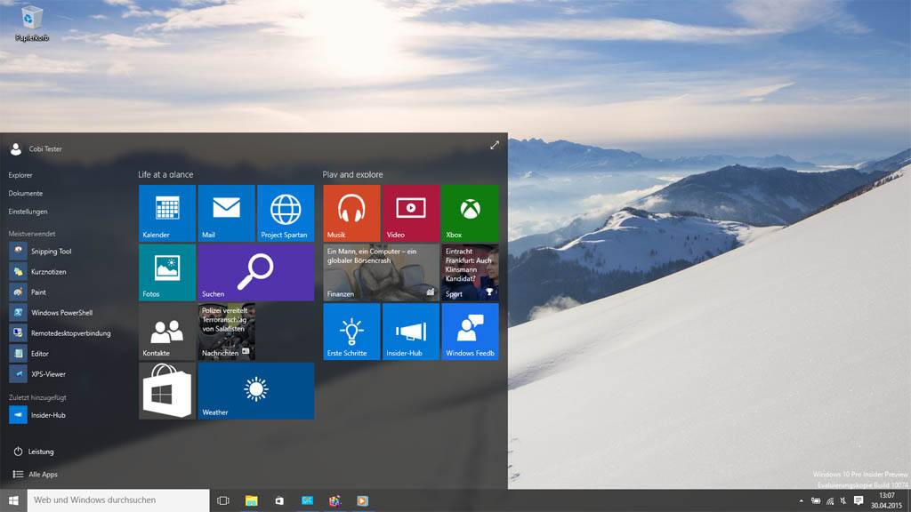 Festgehalten hat Microsoft an der Idee, ein Betriebssystem für alle möglichen Geräte anzubieten. Im Gegensatz zu Windows 8 verändert sich der Look allerdings massiv, ob eine Tastatur und Maus vorhanden sind, oder das Betriebssystem eben nur mit den Fingern bedient wird.